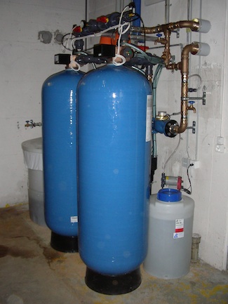 Das auf diese Weise vollständdig enthärtete Wasser wird zur Nutzung als Trinkwasser mit Hartwasser auf den gewünschten Härtegehalt "verschnitten".